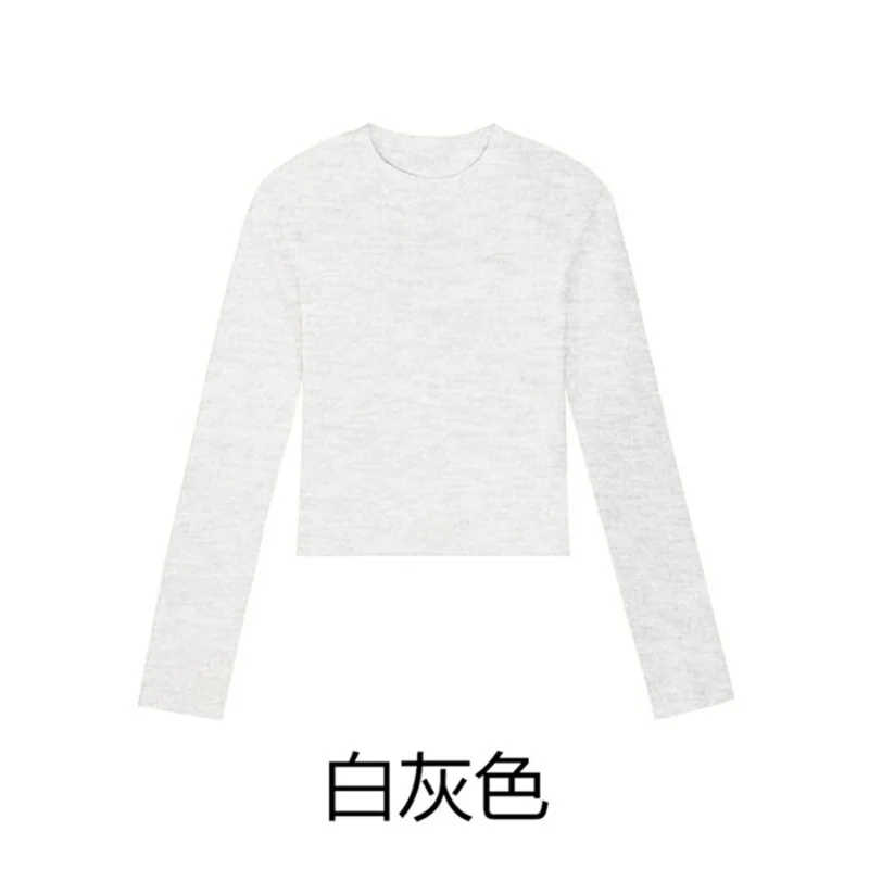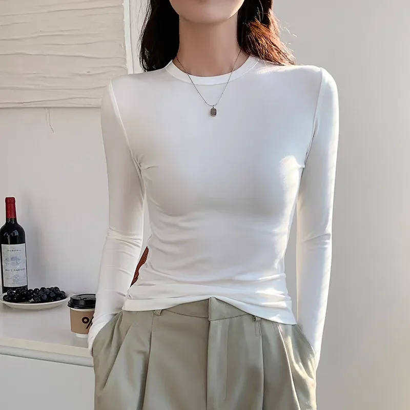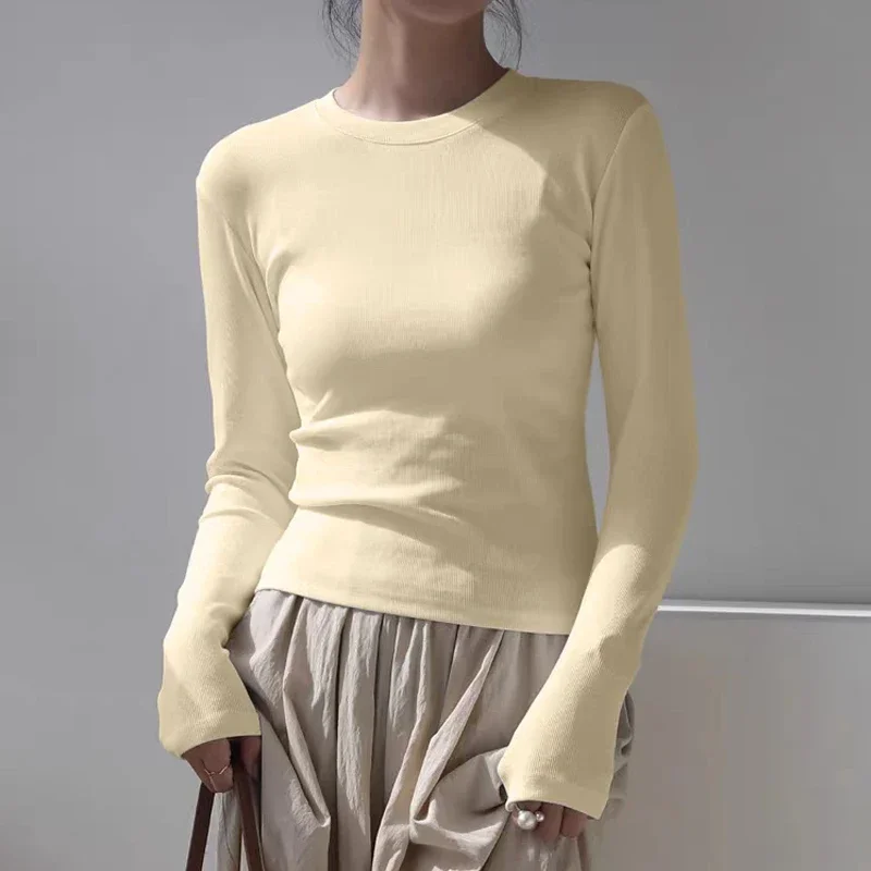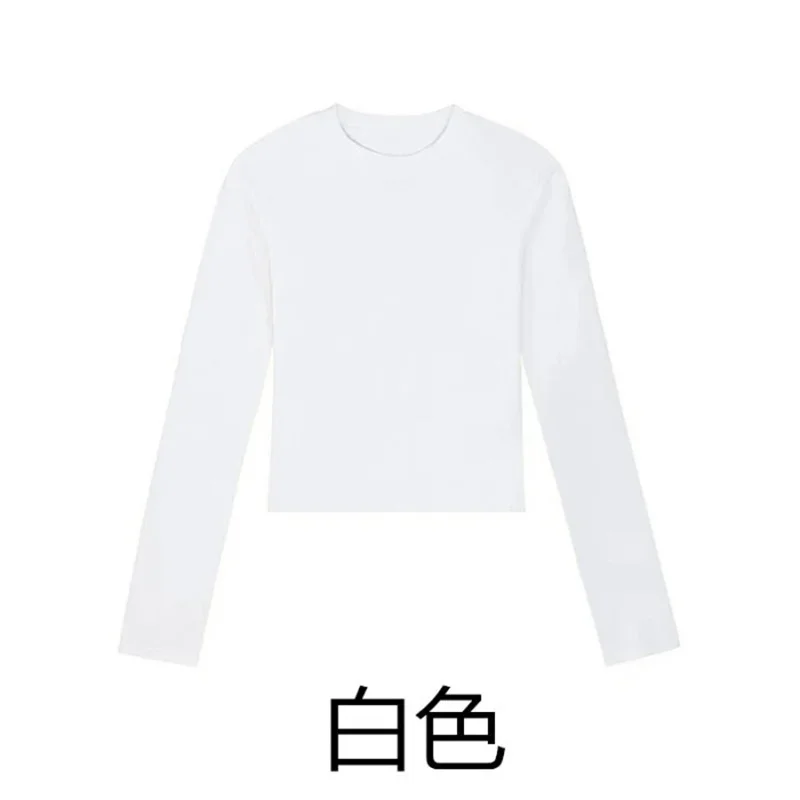 Cotton O Neck Long Sleeve Shirt Women Sexy Cropped Tops 2024 Autumn Black Casual Skinny Slim Basic Woman T Shirts White Clothing